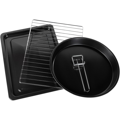 Комплектация Духовка; Прямоугольный эмалированный противень; Круглый эмалированный противень; Хромированная решетка-гриль; Прихват для изъятия противней и решетки; Съемный поддон для сбора крошек и очистки от жира; Инструкция по эксплуатации с гарантийным талоном на последних станицах (необязательно для заполнения по законодательству РФ при интерне-торговли).