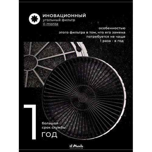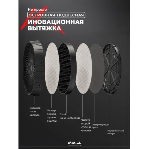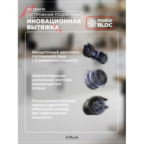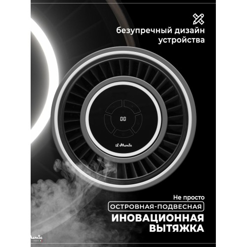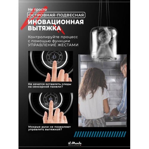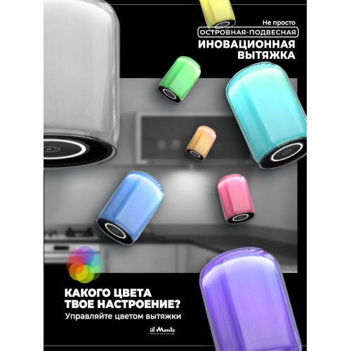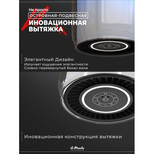 Название Вытяжка для кухни, Островная, Подвесная, Светящаяся, Закаленное стекло, Сенсорное управление, Датчик движения, il Monte KН-HITECH-3701