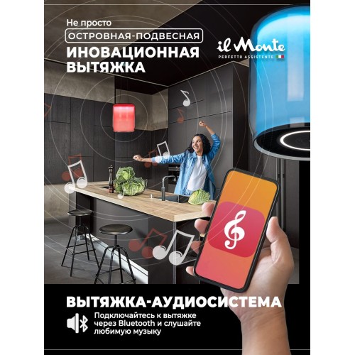 Аудио-Вытяжка Островная, Светящаяся, Сенсорное управление