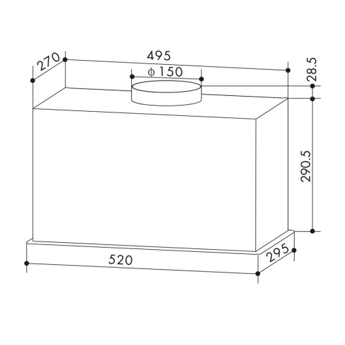 Размеры, мм (ШхГхВ) Габариты вытяжки, мм: 520x295x323