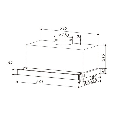 Размеры, мм (ШхГхВ) Габариты вытяжки, (ШхВхГ), мм: 595x300x261