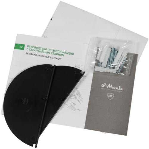 Комплектация Вытяжка; Два трехслойных жировых фильтра; Антивозвратный клапан; Монтажный набор; Инструкция с гарантийным талоном на последних страницах (не обязательно для заполнения по правилам интернет-торговли).