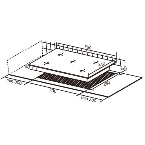 Размеры, мм Размеры варочной поверхности (В х Ш х Г), мм: 58 х 760 х 510;