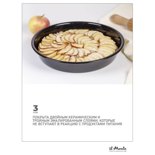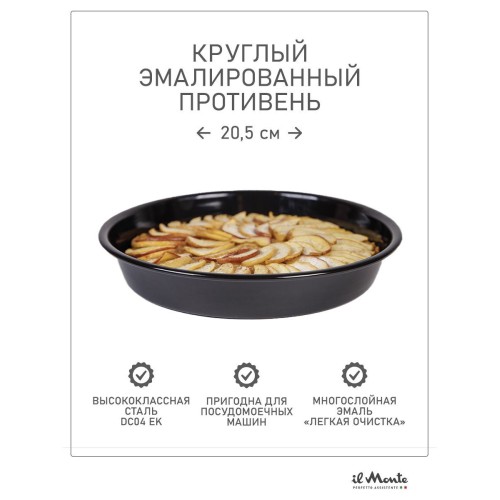 Название Противень для духовки, Жаропрочный, Эмалированная сталь, Диаметр внешний 20 см, il Monte TRE-20D-N
