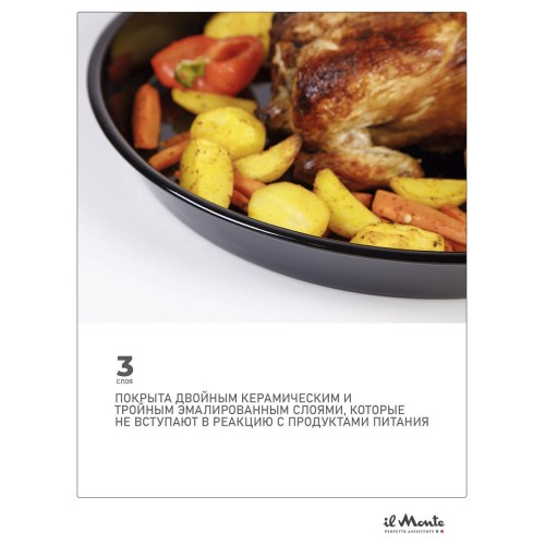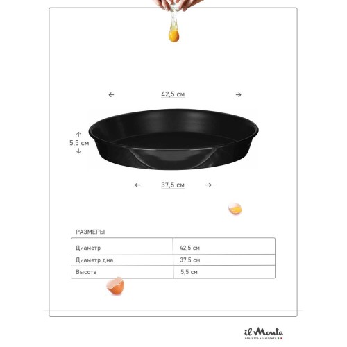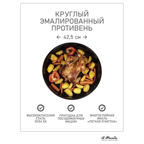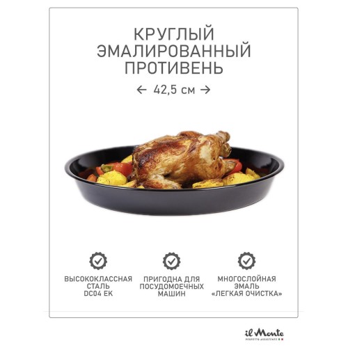 | Название | Противень для духовки, Жаропрочный, Эмалированная сталь, Диаметр внешний 42,5 см, il Monte TRE-42D-N |