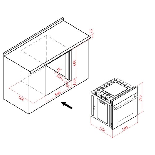| Размеры, мм | (ШхВхГ),мм: 595х598х565 |