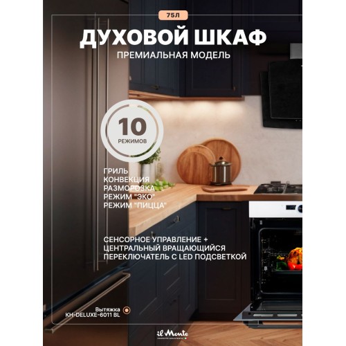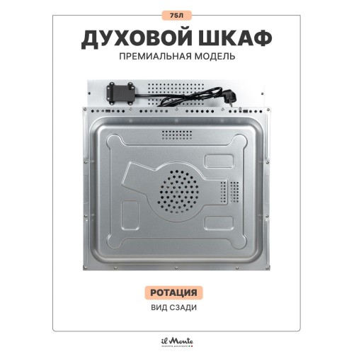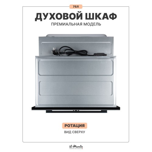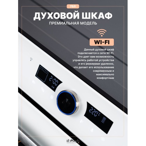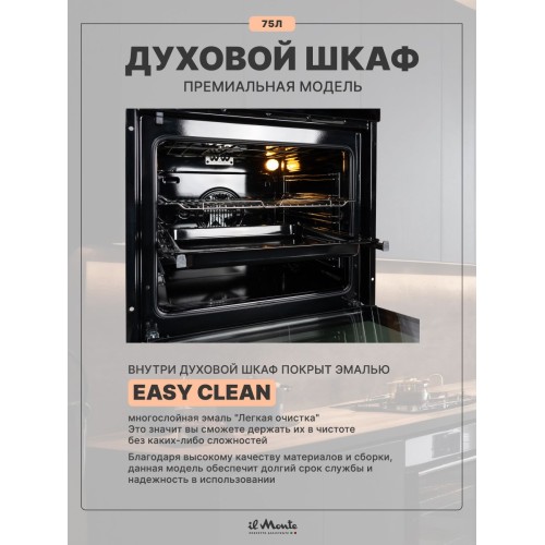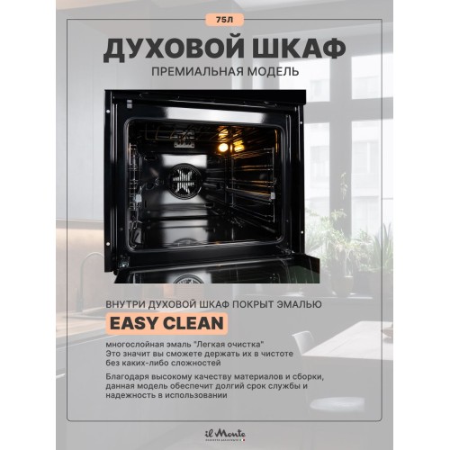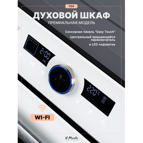 Духовой шкаф электрический встраиваемый, 75 л., Тройное стекло, Управление Wi-Fi, 10 режимов, Конвекция, Разморозка, il Monte BO-77