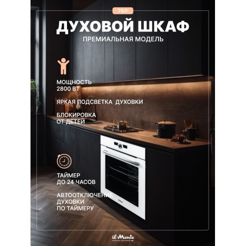 | Название | Встраиваемый духовой шкаф электрический 56л., Конвекция,Таймер с автоотключением духовки, от 80 до 250С., il Monte BO-66 WHITE |